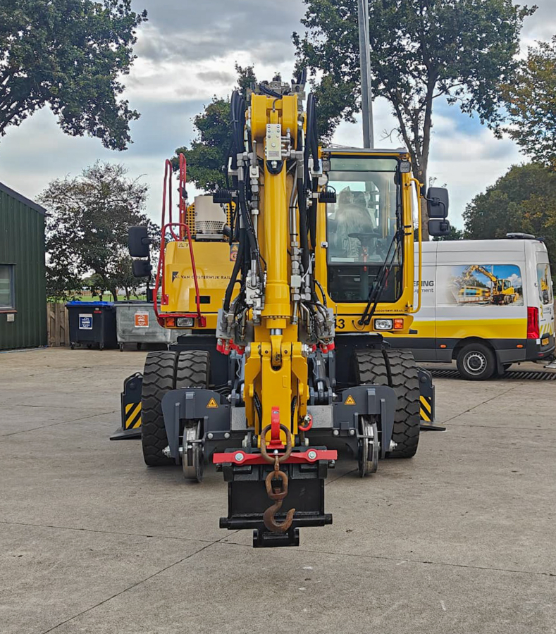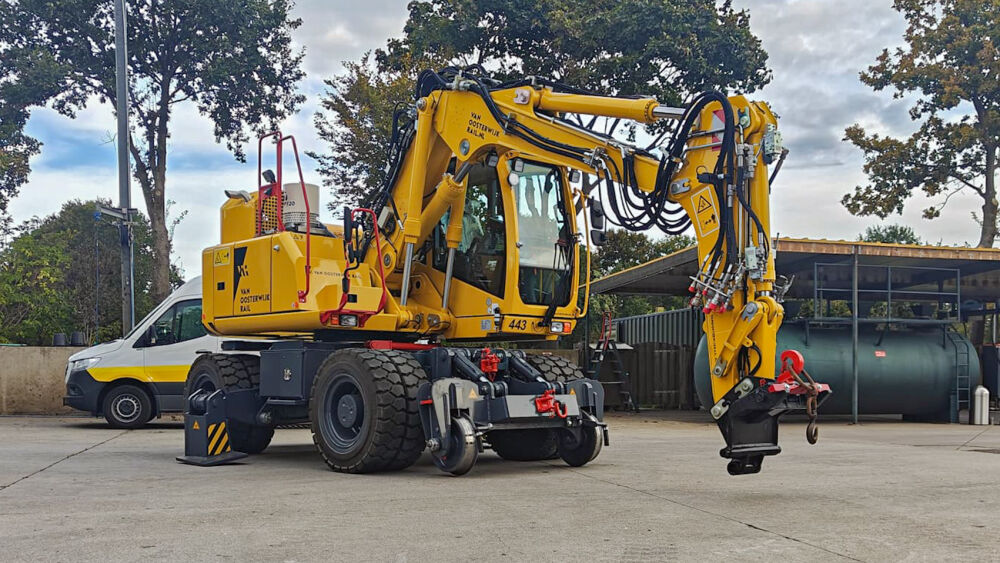 Daarnaast is de spoorwegmachine voorzien van diverse praktische opties en veiligheidsopties zoals een kortsluitkabel, milieupakket, spoorwegverlichting, extra werkverlichting, extra handel voor constant rijden.